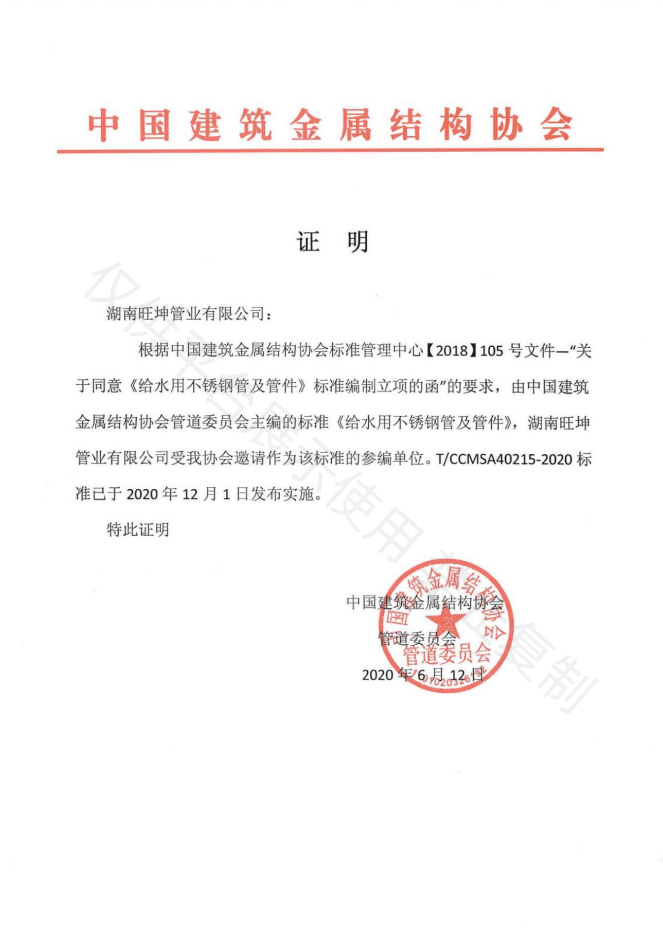 《给水用不锈钢管及管件》编制单位