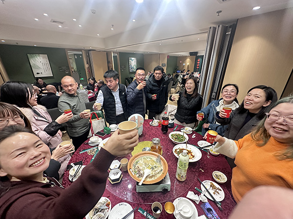 聚餐现场气氛热烈而温馨,成总与公司现场员工举杯同庆,感谢大家一年来的辛勤付出与无私奉献。席间,大家畅所欲言、把酒言欢,在轻松愉快的氛围中分享工作与生活的点滴,充分展现了旺坤管业团结、积极、向上的团队精神。